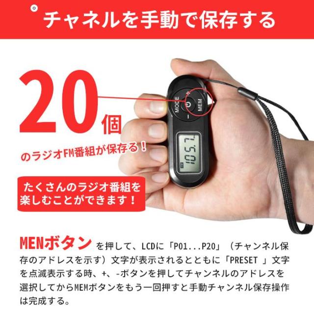 【メモリー可能・オートスキャン機能】抜群なチップを採用し、20個のラジオFM番組が保存でき、たくさんのラジオ番組を楽しむことができます!
