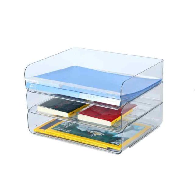 【卓上収納】このレタートレーは3段スタッキングをしているため、スペースの有効活用が可能になります。またA4の書類だけでなく、A4のクリアーホルダーの収納にも対応したサイズ。書類などの収納にも最適です。