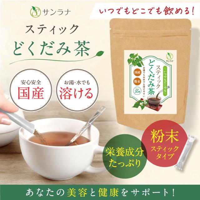どくだみ茶 スティック 無農薬 国産 粉末 1g×30本 ノンカフェイン 健康茶 管理栄養士監修 サンラナ