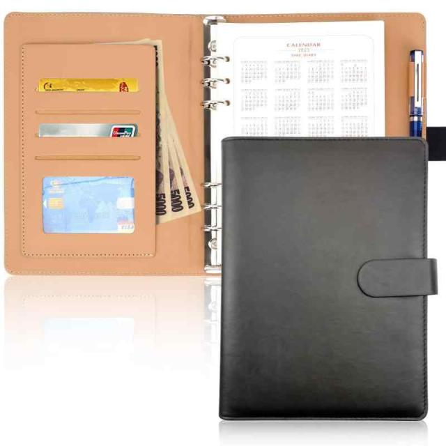 システム手帳 A5 6穴 ルーズリーフ 高級PU 栃木レザー使用 スタンダード タイプ シンプル手帳 (A-黒)