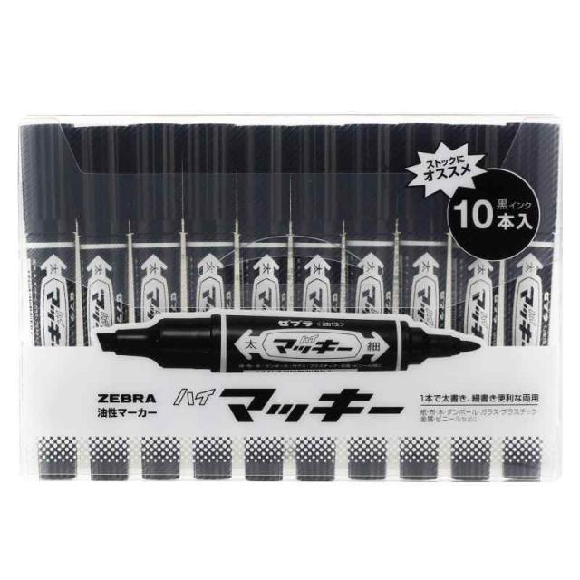 ゼブラ(ZEBRA) 油性ペン ハイマッキー 赤 5本 P-MO-150-MC-R5 (黒 10本 透明シース付)