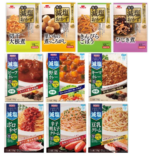 減塩 惣菜 おかず レトルト 詰め合わせ イチビキ ( 減塩おかず 全4種 ) 宮島醤油 ( 減塩 カレー, パスタ 全6種 ) 減塩料理 減塩 レトルト食品 食べ比べ
