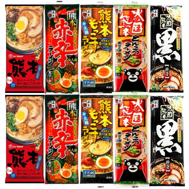 熊本ラーメン マルタイ 五木食品 棒ラーメン 全5種 食べ比べ 詰め合わせ (熊本黒マー油とんこつ, 熊本赤辛, 熊本もっこす, 火の国熊本とんこつ, 火の国熊本黒) 各2袋 マルタイラーメン らーめん 九州ラーメン 味のマルタイ