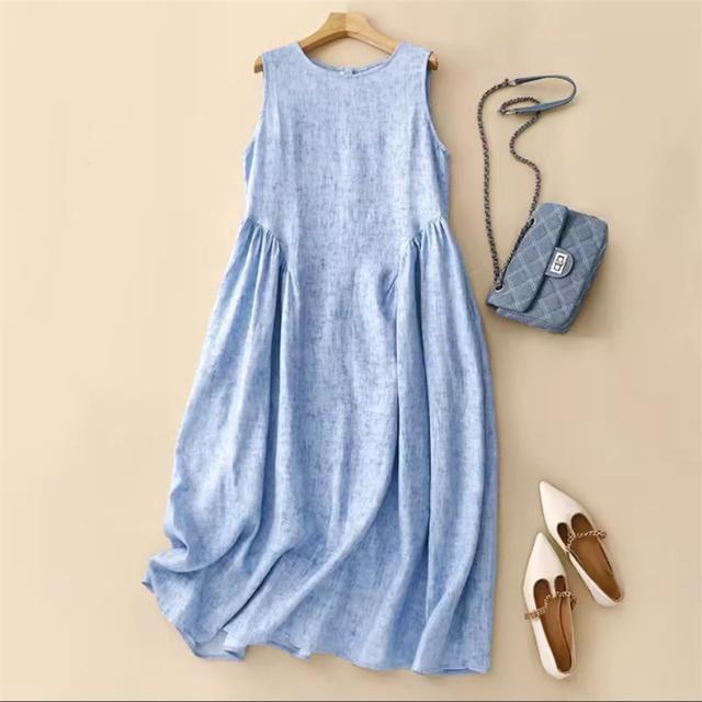 夏ワンピース レディース ロング丈 ノースリーブ 上品にサマになりつつ最旬スタイル 涼しげ シーンを問わず使えるデザイン シンプルながらも強い印象