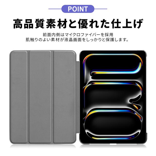 iPad Pro ケース / iPad Air ケース 【高品質素材と優れた仕上げ】 美しい外観と手に馴染む心地良さを提供。 【自動スリープ/ウェイク機能】 フタを開けると自動で画面がオン、閉じると即座にスリープ。 【多用途なスタンド機能】 視聴時は65度、タイピング時は30度の角度で快適に使用可能。 【色鮮やかで楽しい映像】 高透過率で、映像がもっとキレイに楽しめます。 【全画面表示でスムーズな操作】 ケース装着時でも画面全体を隅々まで表示し、操作が快適。 【マグネット吸着】 マグネットで簡単に装着でき、ケースを装着したままワイヤレス充電にも対応。 【安心・安全設計】 耐衝撃・傷防止設計。手に馴染む素材で、カメラや充電プラグへの干渉なし。 |