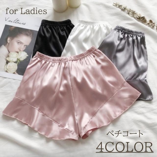 ぺチパンツ レディース ペチコート インナー アンダーパンツ 光沢 フリル シンプル 無地 透け防止 スカート 下 かわいい お