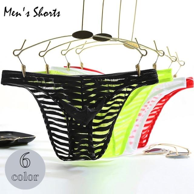 ブリーフ メンズ ショーツ 単品 パンツ 男性 下着 アンダーウェア インナー ボーダー シースルー 薄手 立体裁断 透け感 お