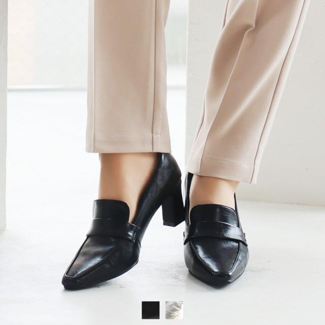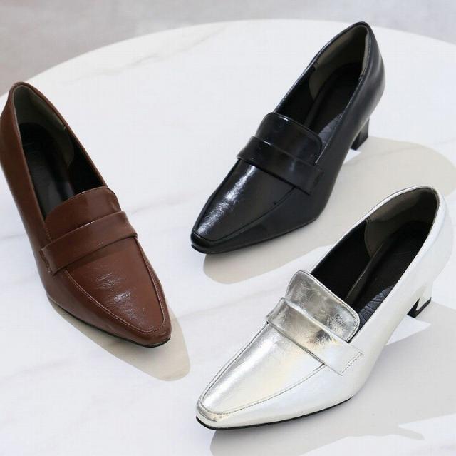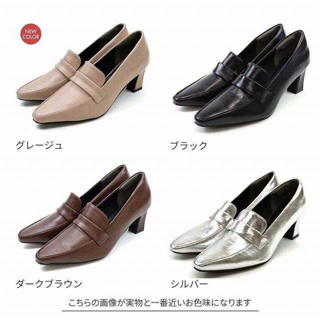 【26春夏新作カラー追加】スクエアトゥデザインヒールローファーパンプス