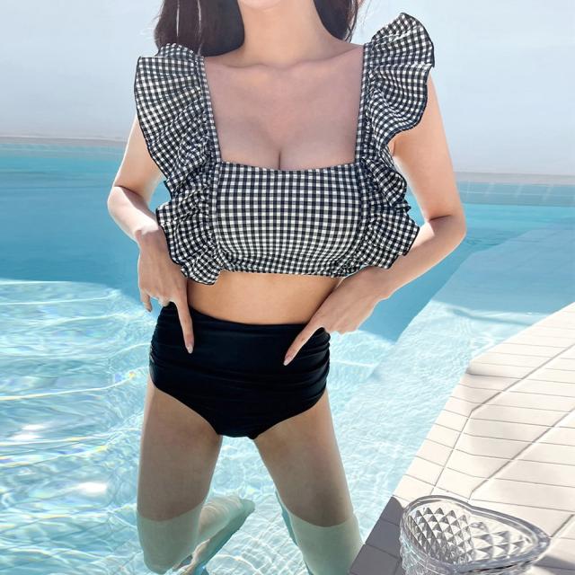 フリルとスクエアネックデザインで、首回りを華奢に見せてくれるセクシービキニセット