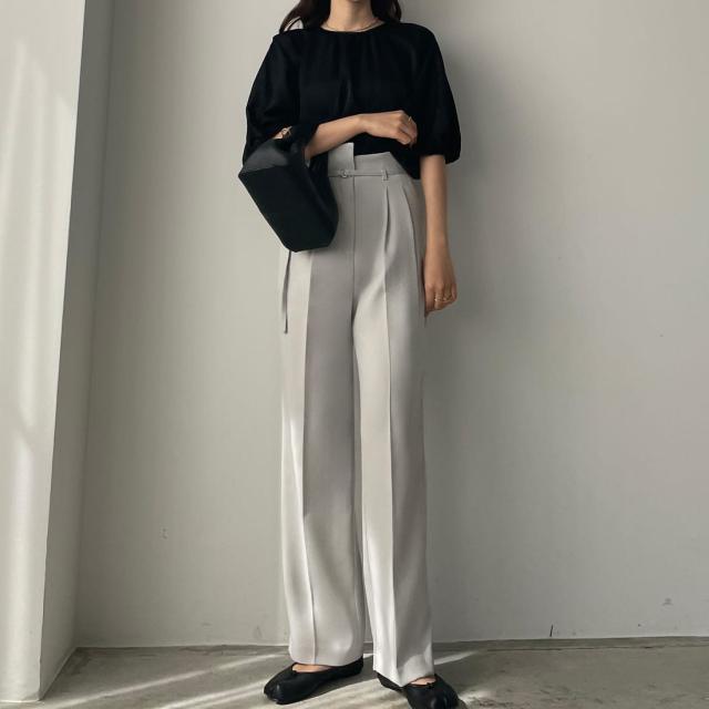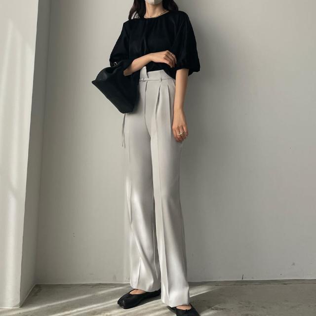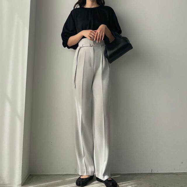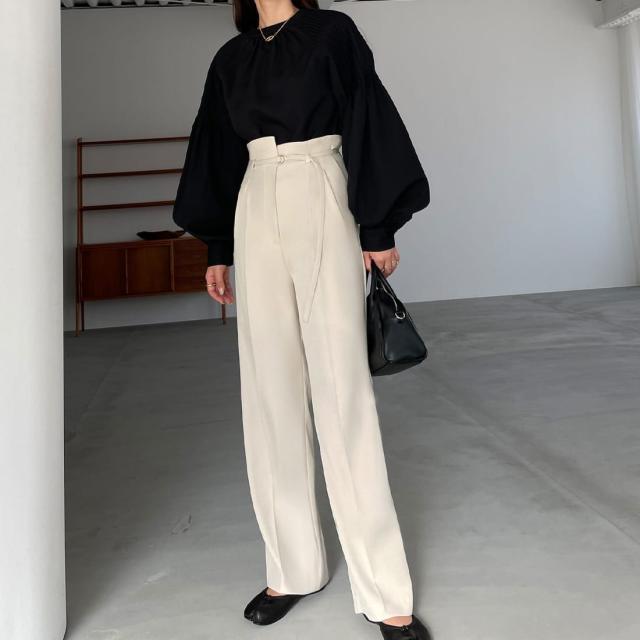 ルエレ(Louere)/Louere ベルト付きアシンメトリーハイウエストパンツ