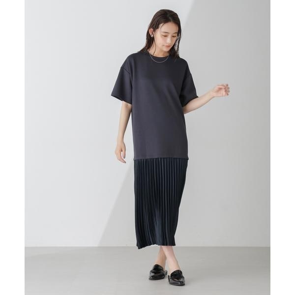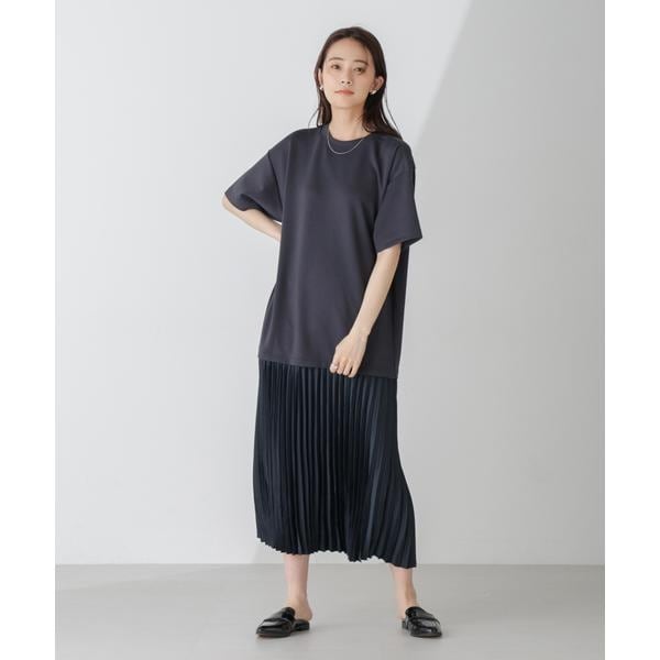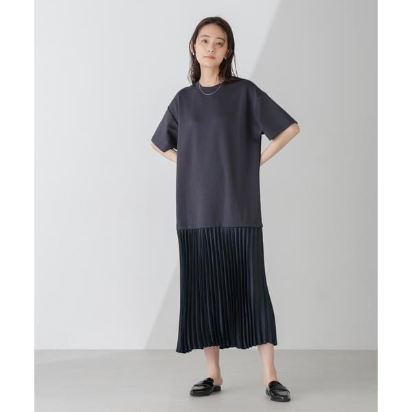 コーディネートいらずでサマになる、異素材コンビのドッキングワンピース。上身頃をやや長めに設定し、カジュアルに着こなせるシルエットバランスに仕上げました。通勤から休日までシーンを選ばず着回せるから、ワードローブに追加しておくと重宝しそう!