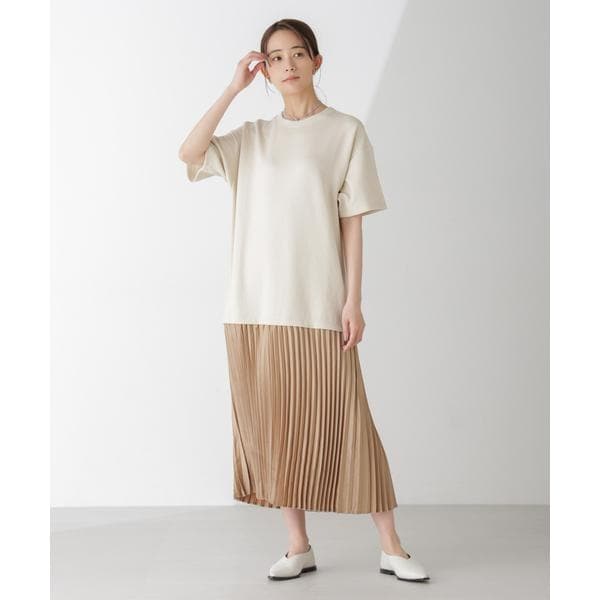 サテンプリーツドッキングワンピース