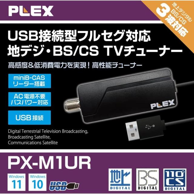 プレクス テレビチューナー USB接続 miniB-CAS カードリーダー搭載 地上デジタル BS CS 対応 TVチューナー PX-M1UR