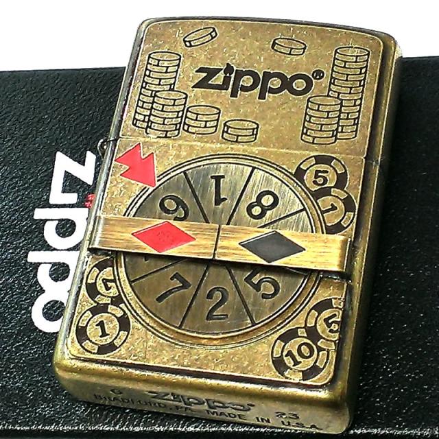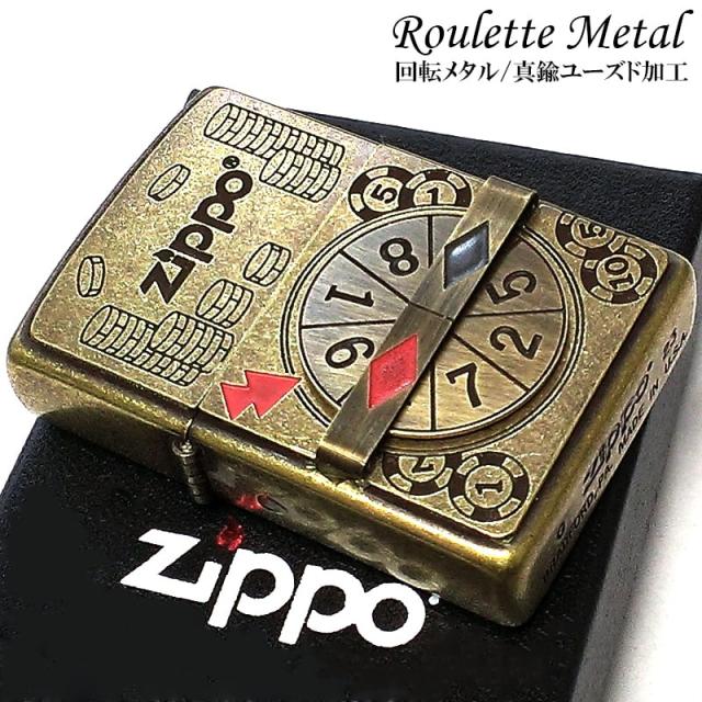 ZIPPO ライター ルーレット 回転メタル ジッポ ユーズドフィニッシュ 可動式 彫刻 ブラス 可愛い アンティークゴールド かっこいい