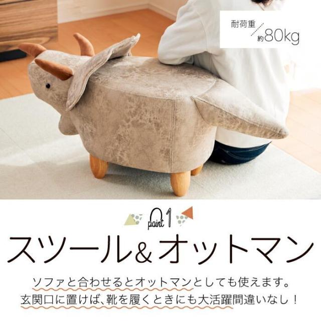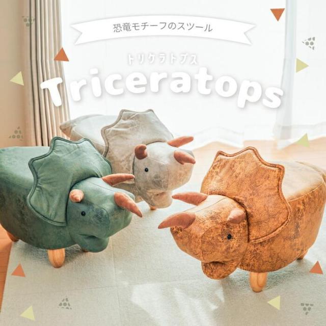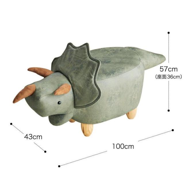 高級感のあるPUレザーを使用した、可愛らしいトリケラトプスのスツール。