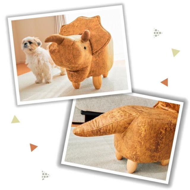 >>>>>高級感のあるPUレザーを使用した、可愛らしいトリケラトプスのスツール。