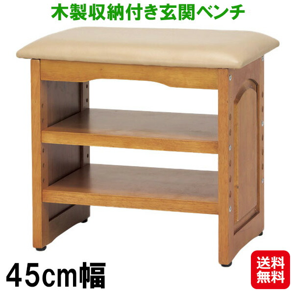 玄関ベンチ 木製 幅45cm 収納 シューズラック アジャスター付き 【木製収納付き玄関ベンチ 45cm】【送料無料】 玄関 ベンチ 収納棚 2段 クッション付き ガタつき防止 組み立て式 dap