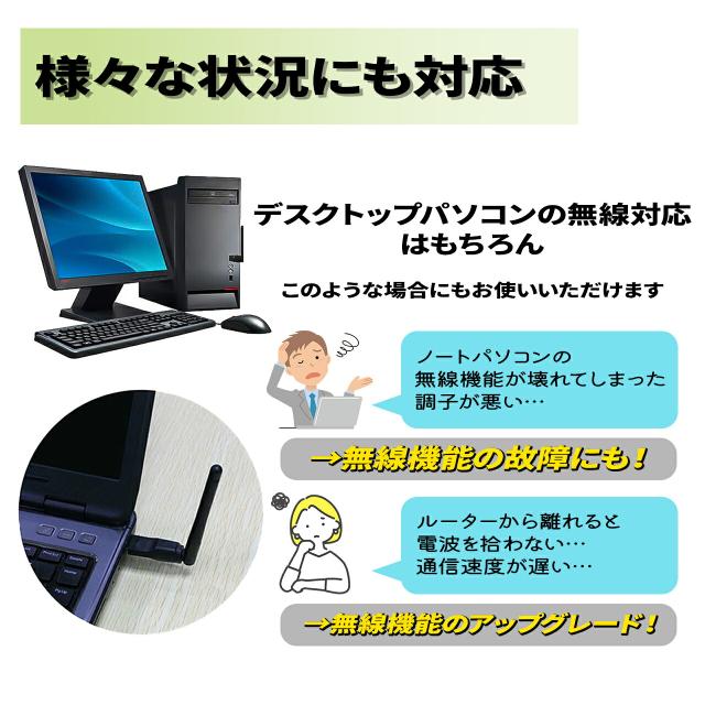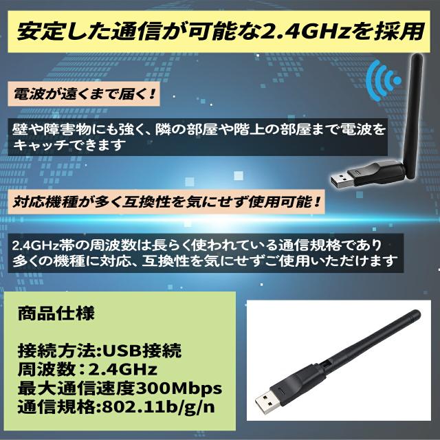 商品詳細: 無線LAN接続ができないパソコンでもUSBに挿すだけで無線LAN接続できます。PCのUSBポートに挿すだけで自動認識します。