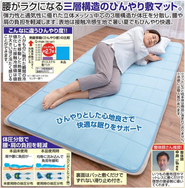 【整体師さんが推奨する 三層構造ひんやり敷マット】【送料無料】 ひんやり マット 敷きマット 敷きパッド 体圧分散 立体メッシュ 三層構造 通気性 冷感 接触冷感 滑り止め付き 洗える 夏 快眠グッズ sd