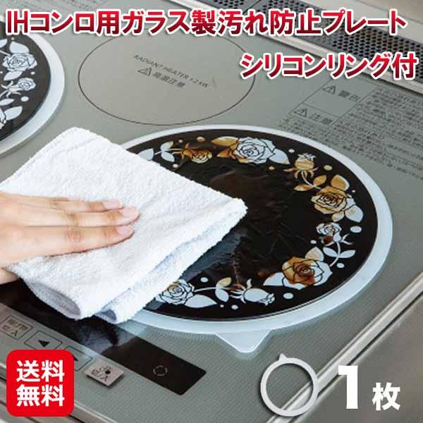 【IHコンロ用ガラス製汚れ防止プレート 1枚 シリコンリング付】【送料無料】