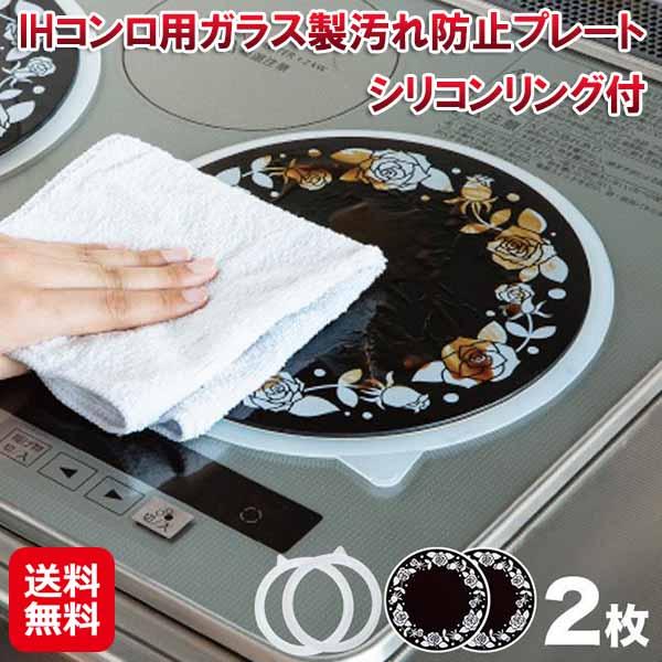 【IHコンロ用ガラス製汚れ防止プレート 2枚 シリコンリング付】【送料無料】