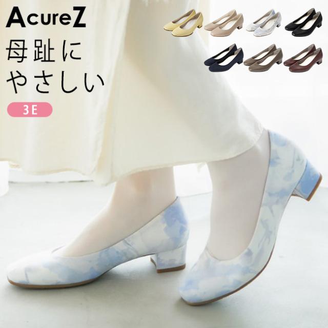 アシックス 商事 アキュアーズ パンプス3E 軽量 痛くない スクエアトゥ ローヒール 太ヒール AcureZ AO-10242 黒 走れる レディース 靴