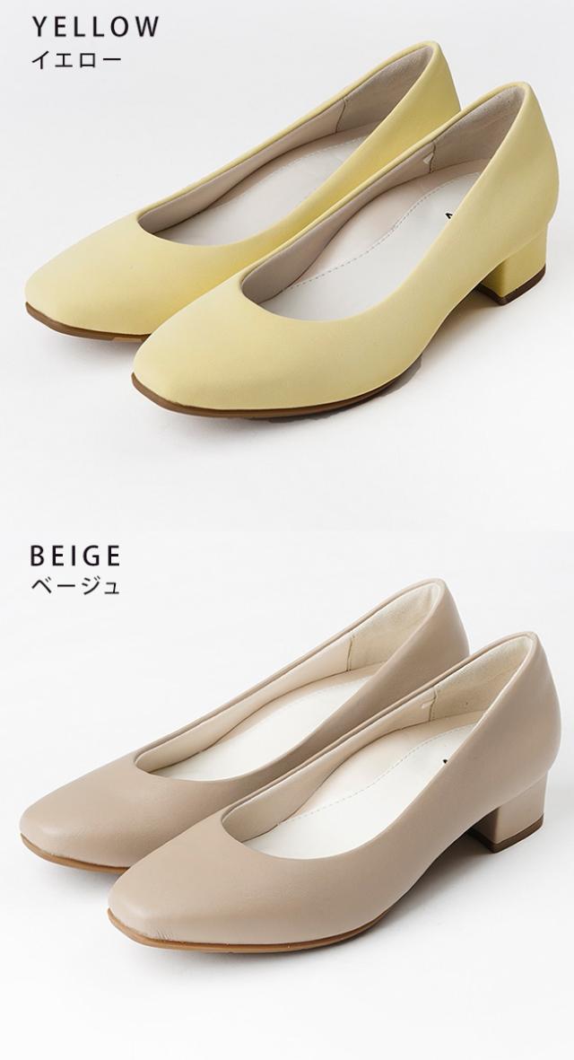 ・約3.5?pヒールのスクエアトゥのプレーンパンプス