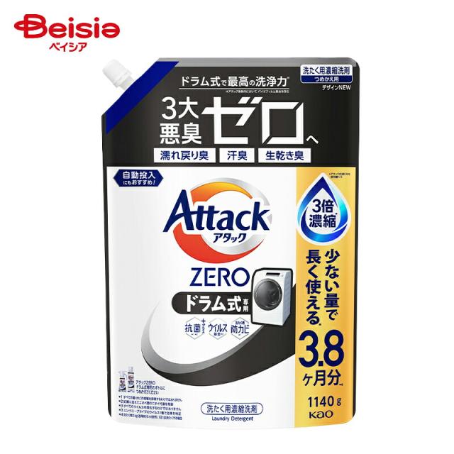 花王 アタックZERO ドラム つめかえ 1140g | アタックZERO ドラム 洗濯洗剤 詰め替え まとめ買い 洗剤 ドラム式専用 大容量 液体洗剤 洗濯 衣類用洗剤 花王 部屋干し 節約 時短