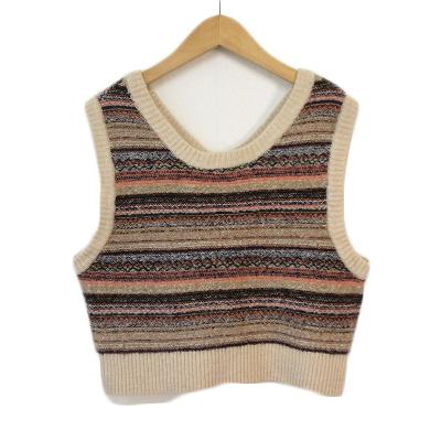 【中古】ニコアンド Niko and.. ベスト ニット ボーダー Vネック クロップド 3 ベージュ レディース
