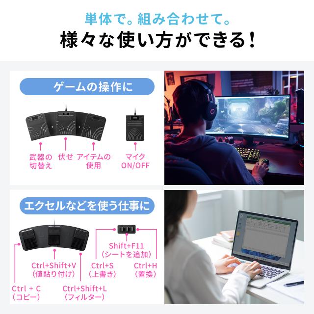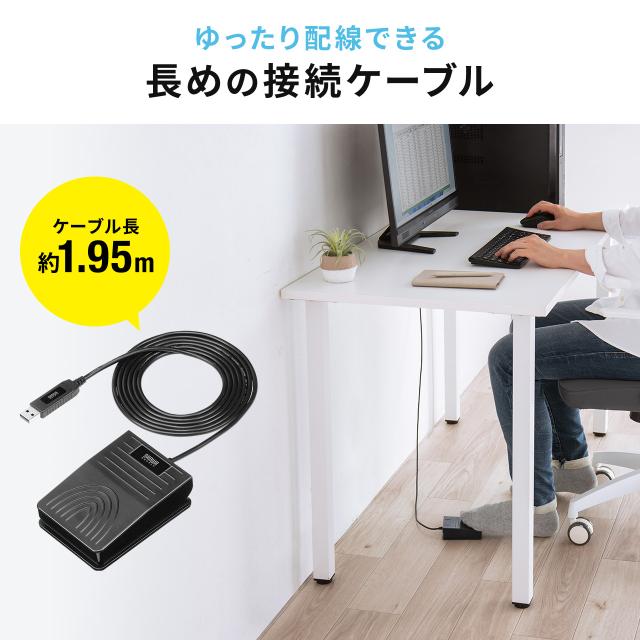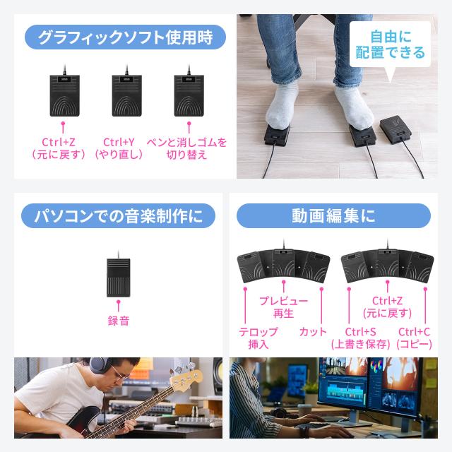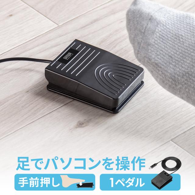 USBフットペダル スイッチ 有線接続 手前押し カスタム可能 マクロ プログラマブル マウス操作対応 ショートカット割り当て ゲーミング 配信 キーボード メカニカル[400-MA213BK]