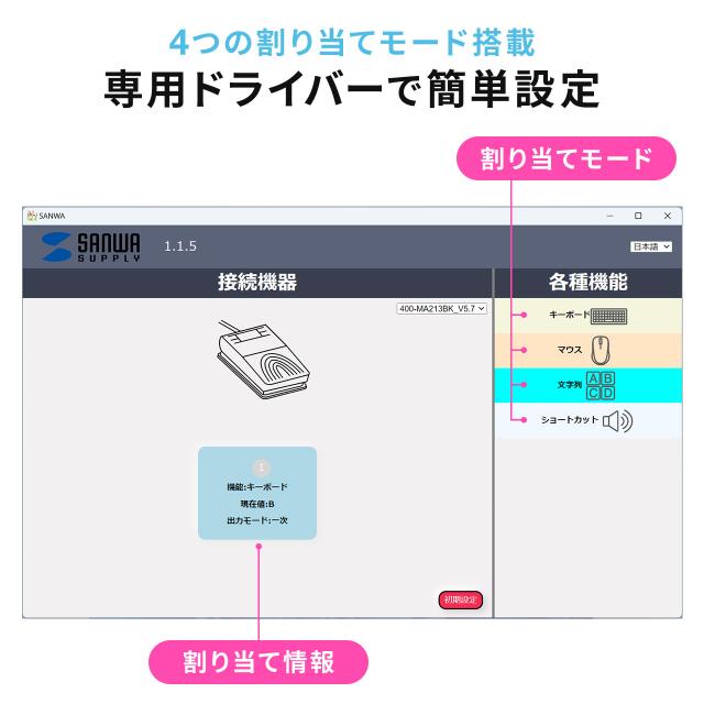 ※割り当てた機能はアプリケーションや機器により正常に動作しない場合があります。