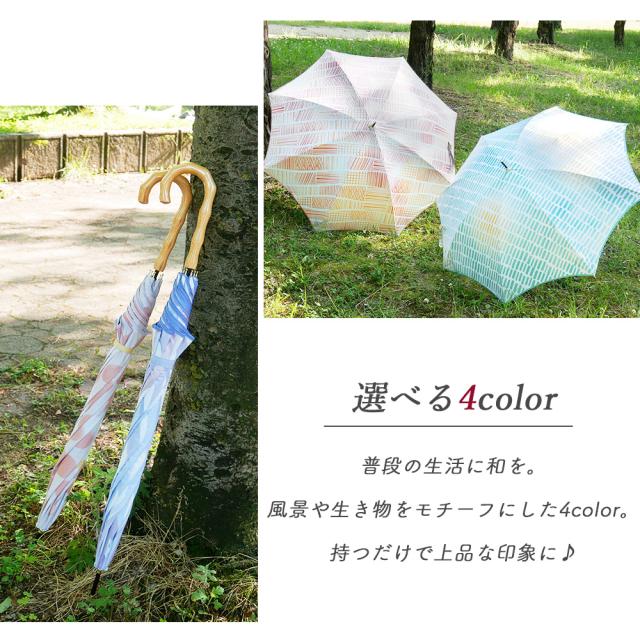 傘 晴雨兼用 雨 UVカット 紫外線 対策 wacco 長傘 雨傘 日傘 遮光 遮蔽 PUコーティング グラスファイバー 手開き式 直径96cm 8本骨 軽量 オレンジ 黄色 緑 青 紫 和 風景 柄 朝焼け 水面 蛍 ホタル ほたる 蝶サントス santos