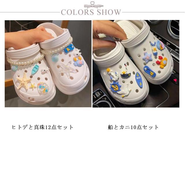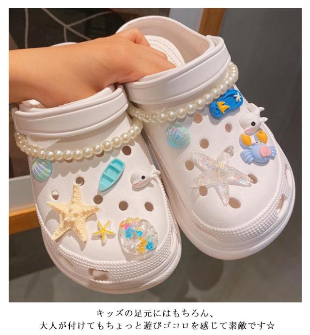 シューパーツ に 靴 アクセサリー シューズアクセサリー ガールズ シューパーツ シューアクセサリー つける レディース 女性 10点/12点セット おしゃれ かわいい アクセサリー サンダル用 シューチャーム ヒトデ 真珠 船 カニ