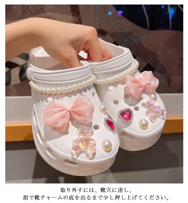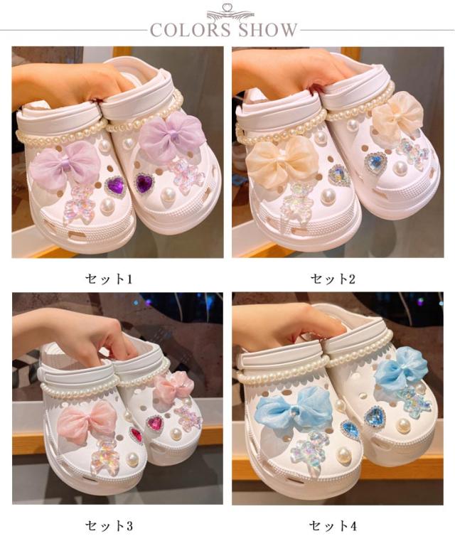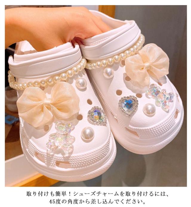 シューパーツ 靴飾り 靴 に つける アクセサリー 12点セット シューズアクセサリー シューアクセサリー レディース 女性 アクセサリー おしゃれ かわいい ガールズ サンダル用 シューチャーム リボン ハート パール調 送料無料