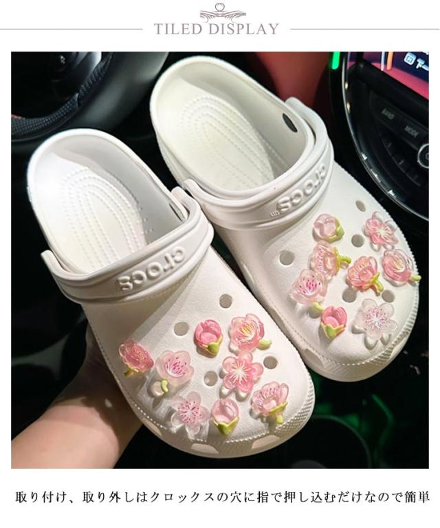 | おしゃれな櫻靴飾り12/16点セット 取り付け、取り外しはクロックスの穴に指で押し込むだけなので簡単 キッズの足元にはもちろん、大人が付けてもちょっと遊びゴコロを感じて素敵です☆ | |