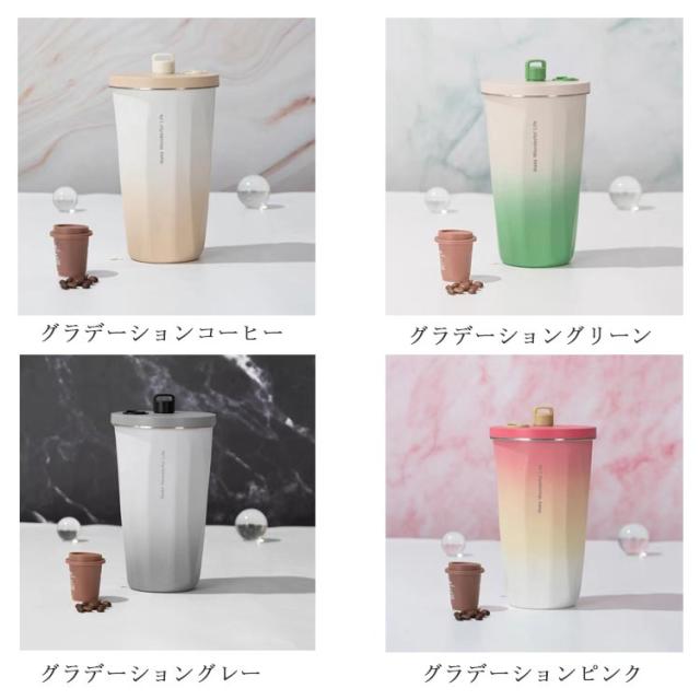 ストロー付き かわいい グラデーションカラー ストロー付きタンブラー 収納 ステンレス タンブラー 600ml タンブラー 水筒 無地 保冷 蓋付き ソリッドカラー ペア ストロー 持ち運び 真空二重構造 保温 2タイプ選べる 結露しない 二重構造 真空断熱 アウトドア 遠足 車