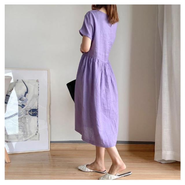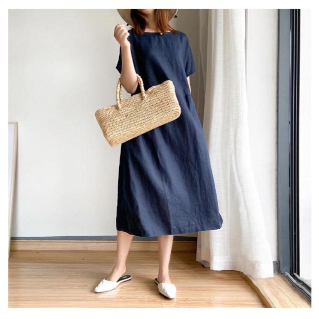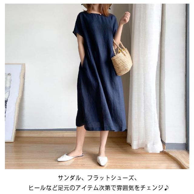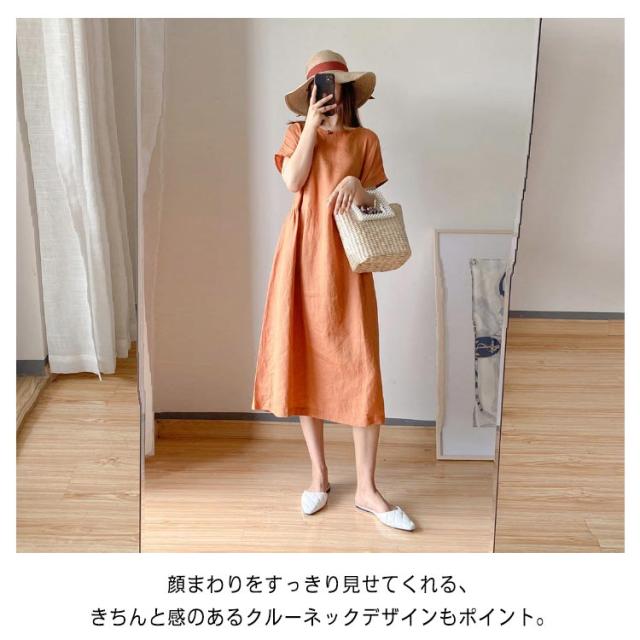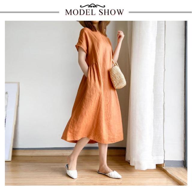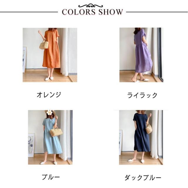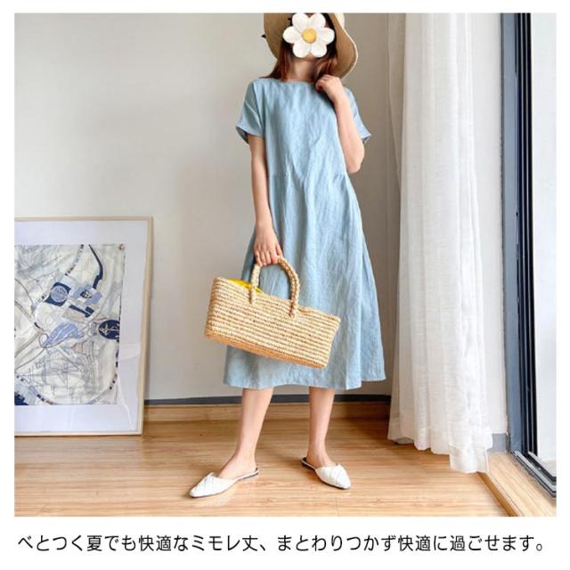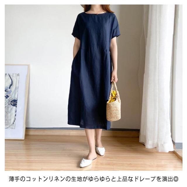 ロング丈ワンピース リネンワンピース ワンピース ワンピ 送料無料 ナチュラル 大きいサイズ 無地 夏ワンピース 半袖 リネン ミモレワンピース Aライン 春夏 薄手 綿麻 シンプル カジュアル ゆったり 送料無料 体型カバー