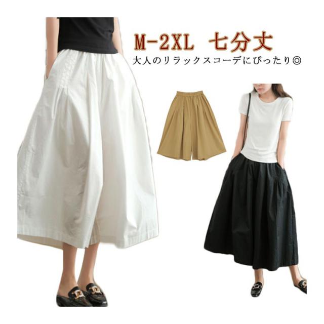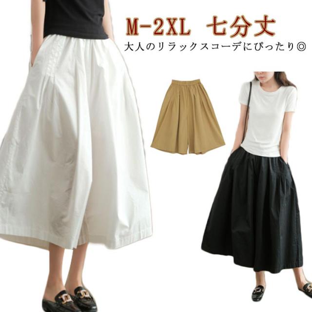 スカーチョ ガウチョパンツ ガウチョ レディース キュロット イージーパンツ 送料無料 ワイド スカンツ 送料無料 七分丈 ワイド 体型カバー スカート風 ボトムス ウエストゴム ワイドパンツ ゆったり 肌ざわり カジュアル シンプル ナチュラル