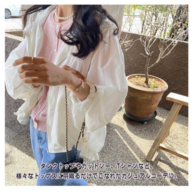| レジャーシーンでの日よけや防風対策に◎サッと着られる薄手のフード付きパーカー。 日中の日差しは気になるけど、防寒対策もしっかりしたい! ジップアップタイプなら、サッと脱ぎ着できるので体温調節もかんたんです! 袖はふんわり可愛らしいボリュームスリーブ。 裾にはドロスト付きで、自分好みのシルエットを楽しめる1着。 パンツと合わせたカジュアルスタイルはもちろん、ワンピースやロングスカートなど甘めアイテムと合わせるのもおすすめ♪ | |
