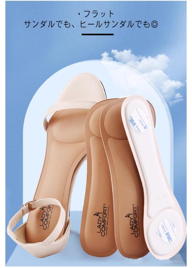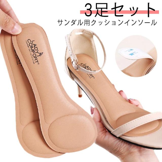 クッション性 インソール 3足セット 中敷き ミュール パンプス パンプス サンダル用 衝撃吸収 靴ずれ 防止 パッド 靴に貼る 貼るタイプ レディース 前すべり 吸汗