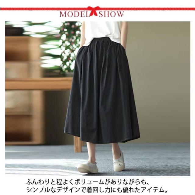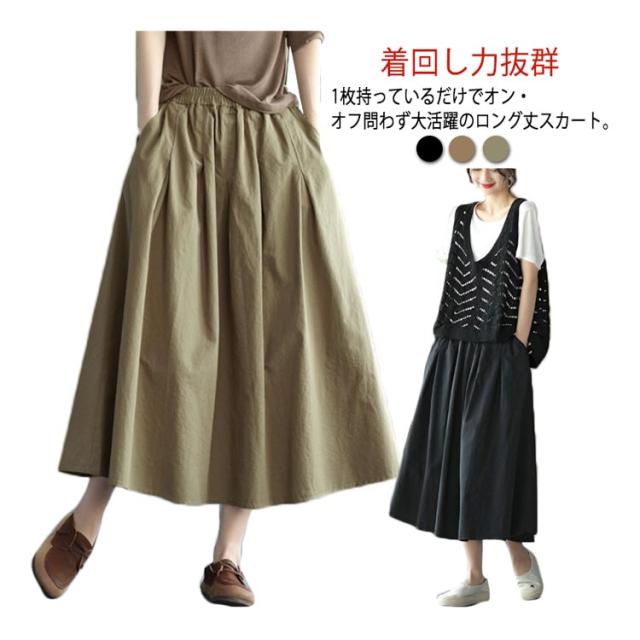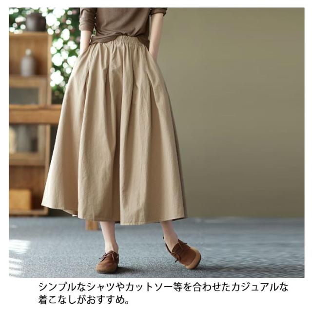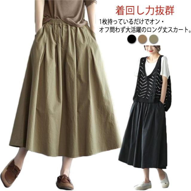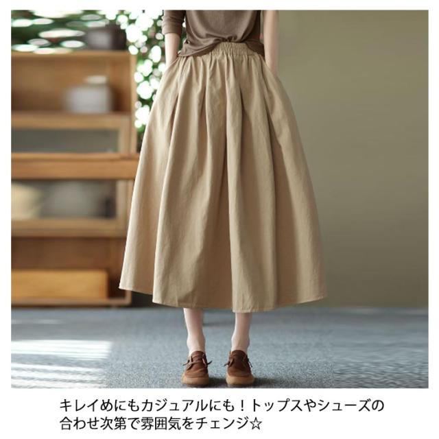 送料無料 フレアスカート ロング丈 Aライン ミモレ丈 スカート マキシスカート ロングスカート レディース ボリューム ふんわり おしゃれ かわいい ボトムス 綿 きれいめ 可愛い カジュアル 婦人服 シンプル