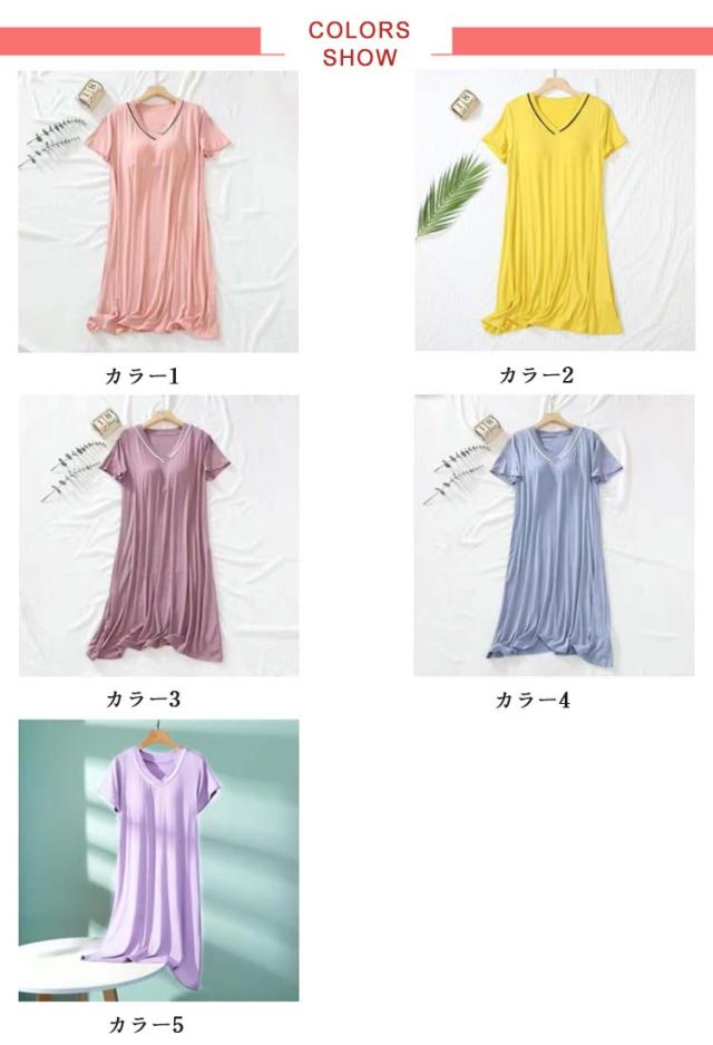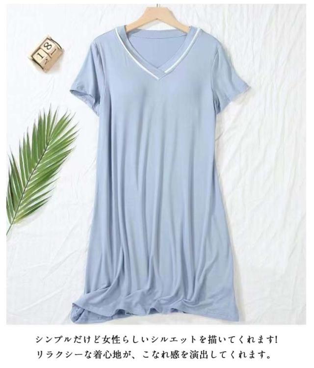 vネック カップ付き ワンピース 半袖 涼しい ひんやり アイスシルクパジャマ ルームウェア レディース 涼感ワンピース 薄手 春 かわいい 可愛い パッド付 マタニティ 部屋着 ゆったり 夏 送料無料