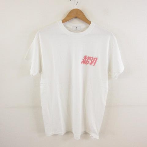【中古】アクビ ACVI カットソー Tシャツ 半袖 ロゴ プリント 白 *T856 メンズ