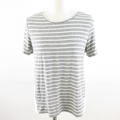 【中古】クリア Clear カットソー レース 半袖 ボーダー ストレッチ グレー 白 M *A665 レディース