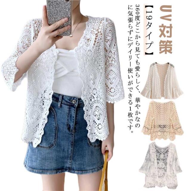 総レース カーディガン レディース 19タイプ 羽織り アウター カーディガン レディース夏 羽織 7分袖 花柄 透け感 ボレロ サマーカーディガン トップス ライトアウター レース ゆったり カジュアル風 おしゃれ 開け 冷房対策 UV対策 可愛い お洒落 送料無料