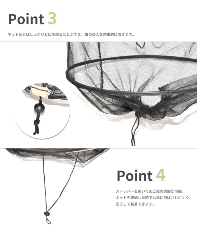 360°カバーできるネットを搭載した虫除けハットです。