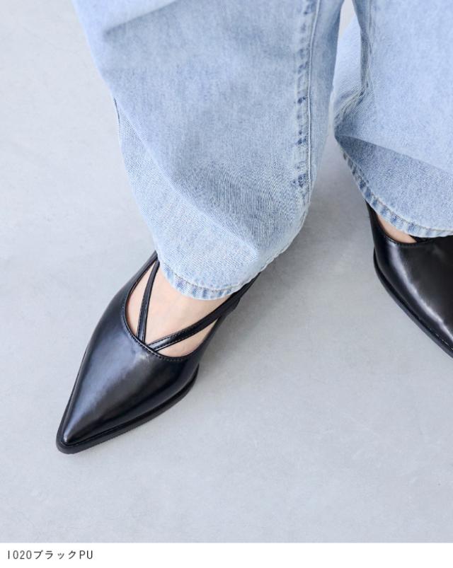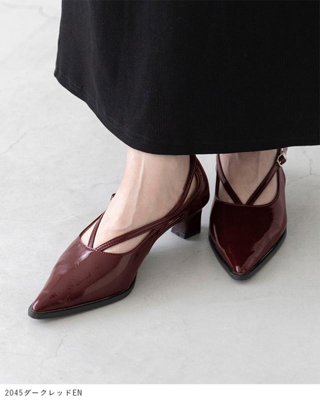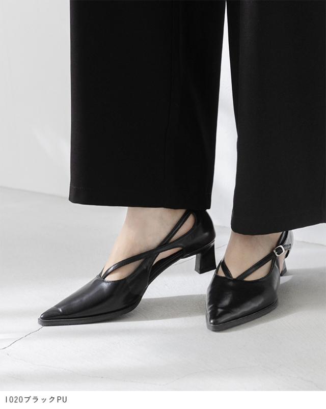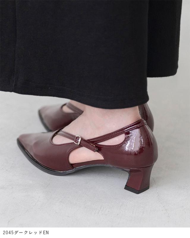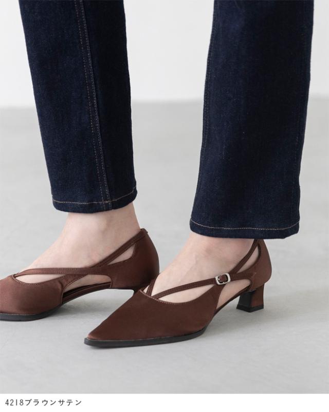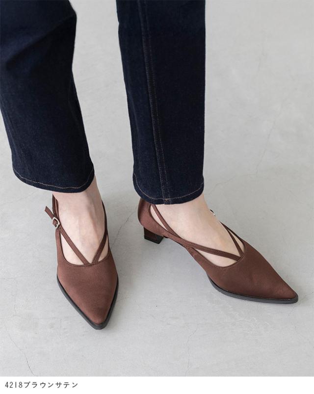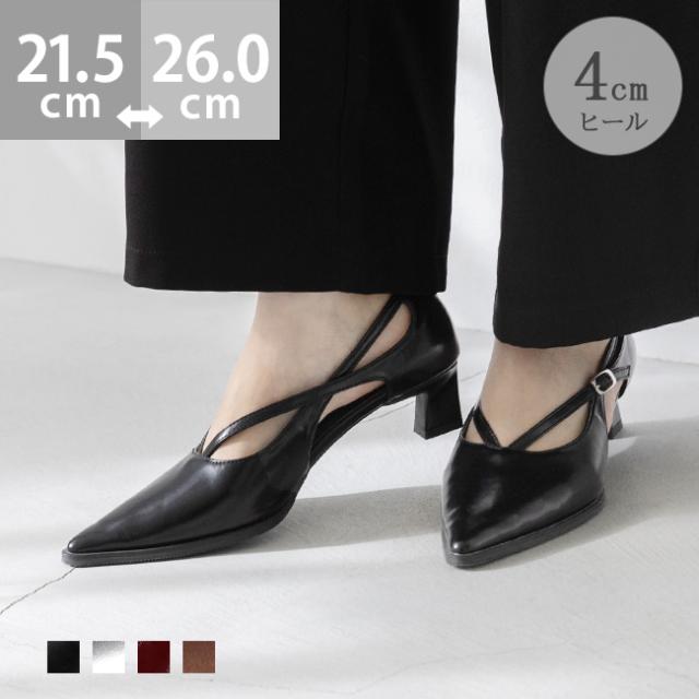 パンプス 痛くない 歩きやすい 靴 レディース 走れるパンプス 大きいサイズ 4cmヒール ポインテッドトゥ クロスストラップ きれいめ 送料無料