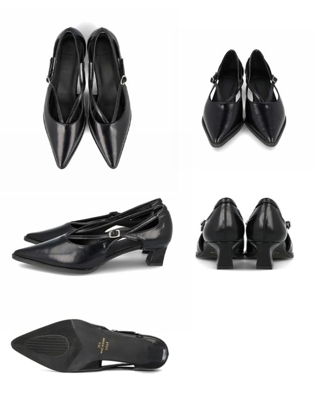 シャープなポインテッドトゥにトレンドのコバが特徴的な旬シルエット。