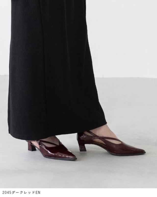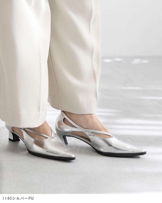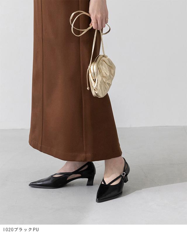 少しくびれた変形ヒールも合わさって、履くだけで大人の抜けコーデが完成します。