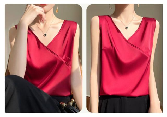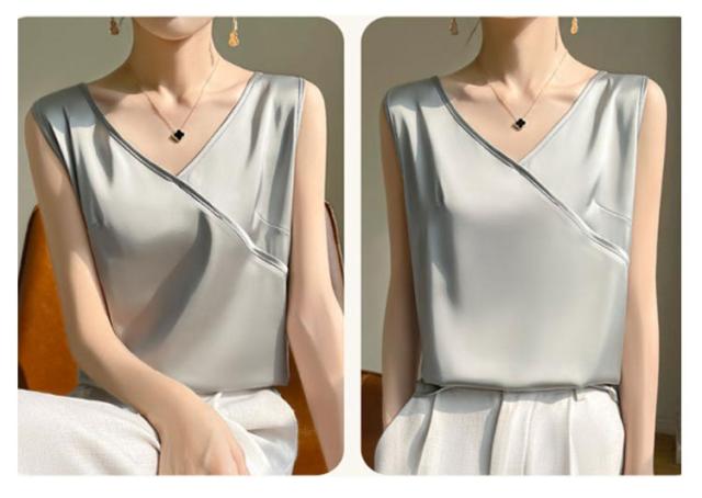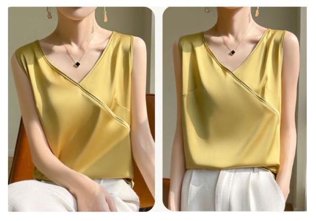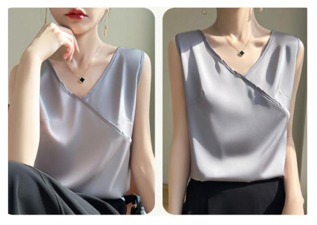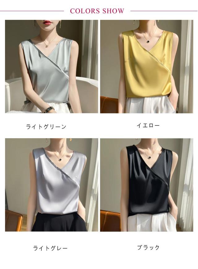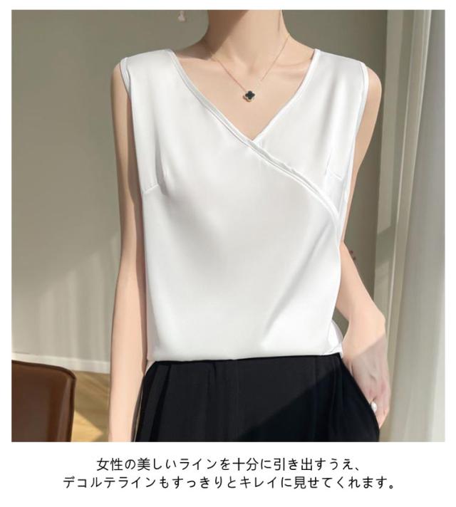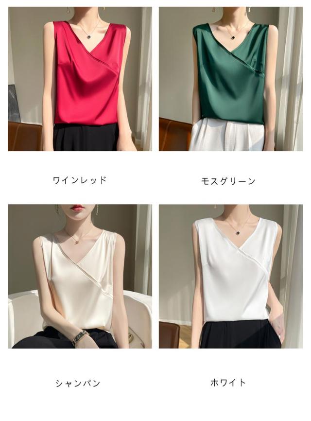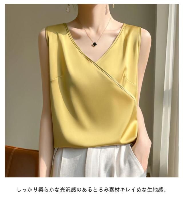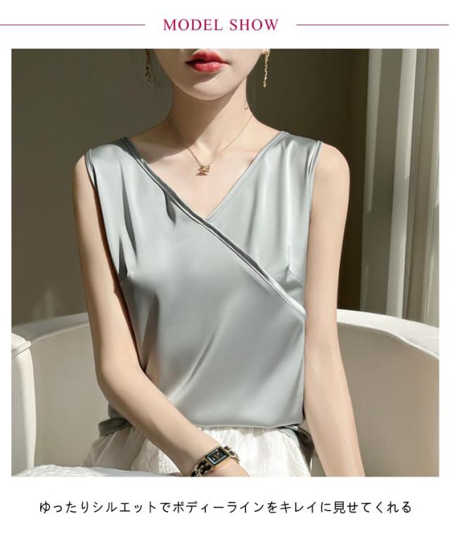 美肌 シルク シャツブラウス トップス 薄手 タンクトップ ゆったり サテン ブラ紐隠し インナー キャミソール 上品 光沢感 吸湿 通気性 保湿 キャミソール 敏感肌 大人 普段着 夏 黒 白 大きいサイズ